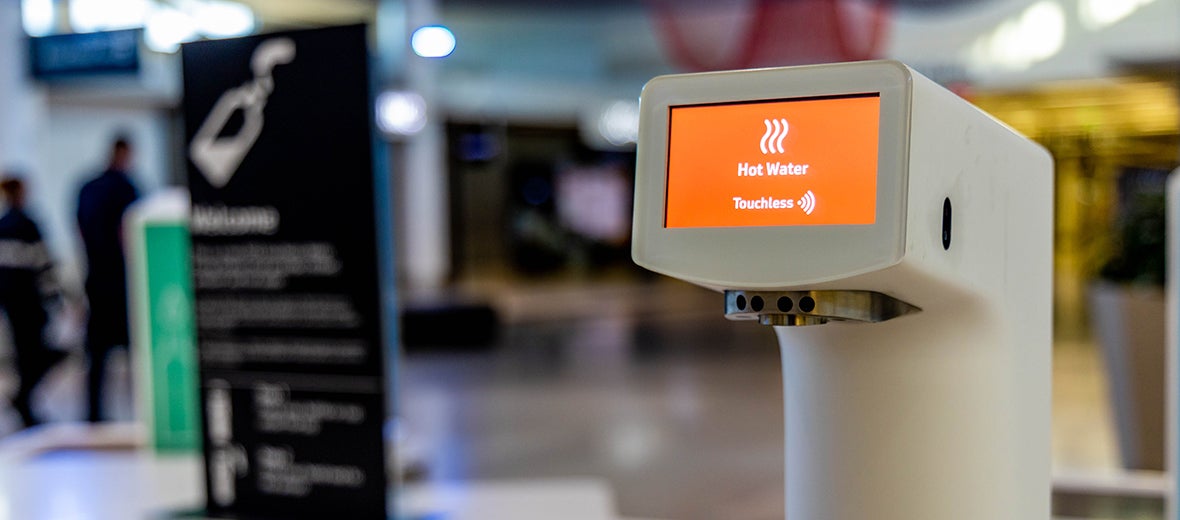 Refill and refresh at SFO's water filling stations. These touch-free, sensor operated water bottle refill stations provide access to San Francisco's free high-quality tap water. Sourced from pristine Sierra snowmelt that comes from the Hetch Hetchy reservoir located in Yosemite National Park and from within two protected local watersheds in the Bay Area, San Francisco tap water is some of the purest, safest and best tasting water in the world.